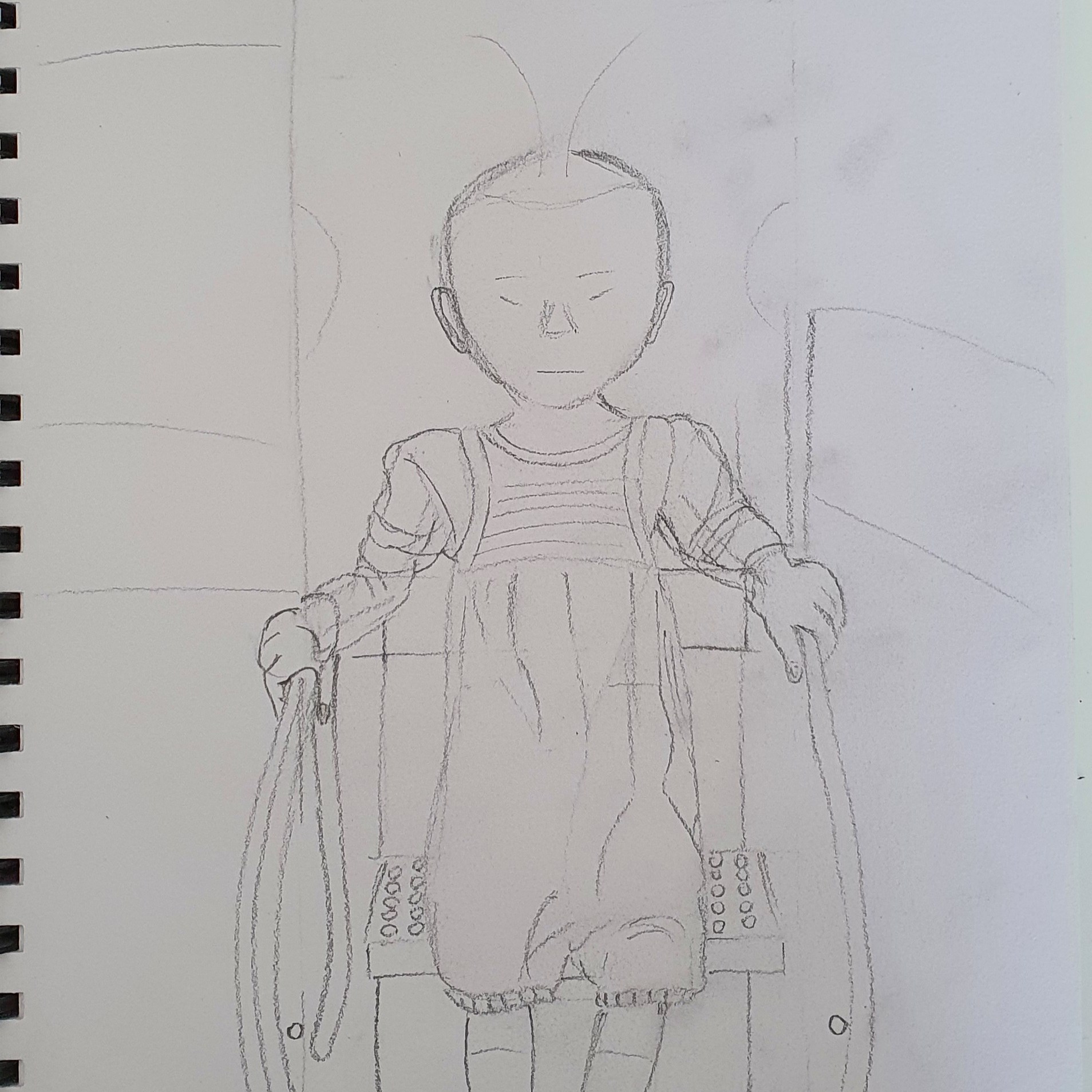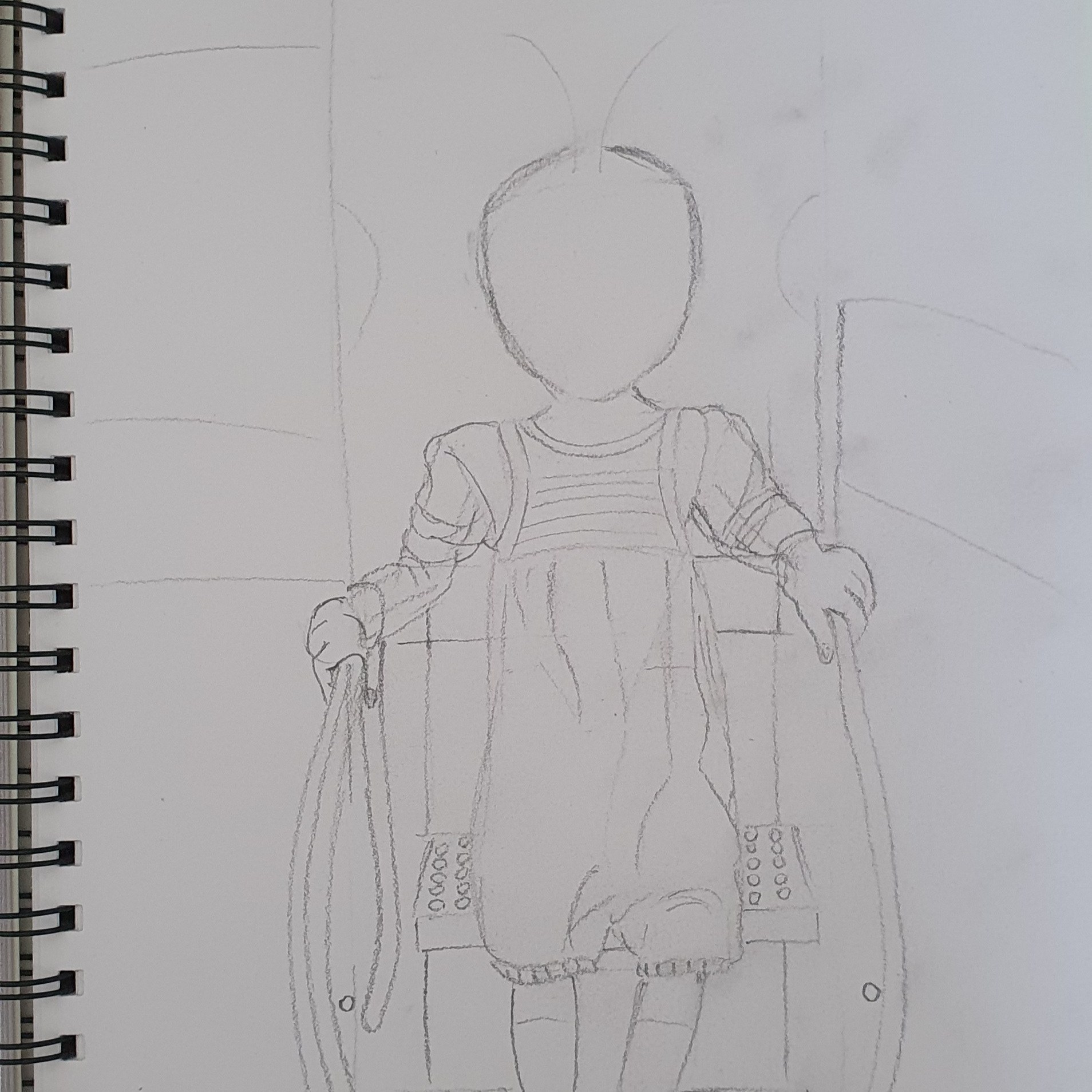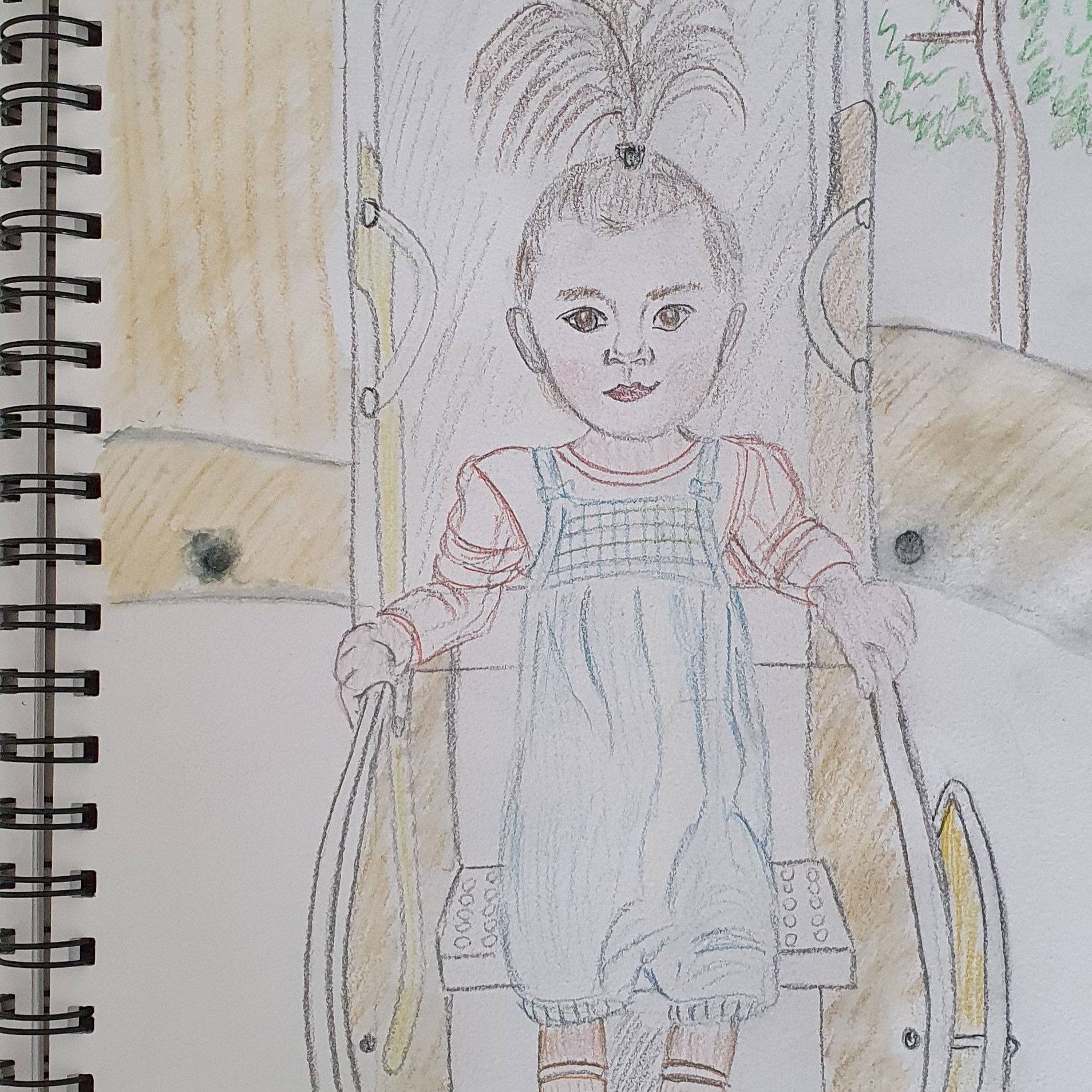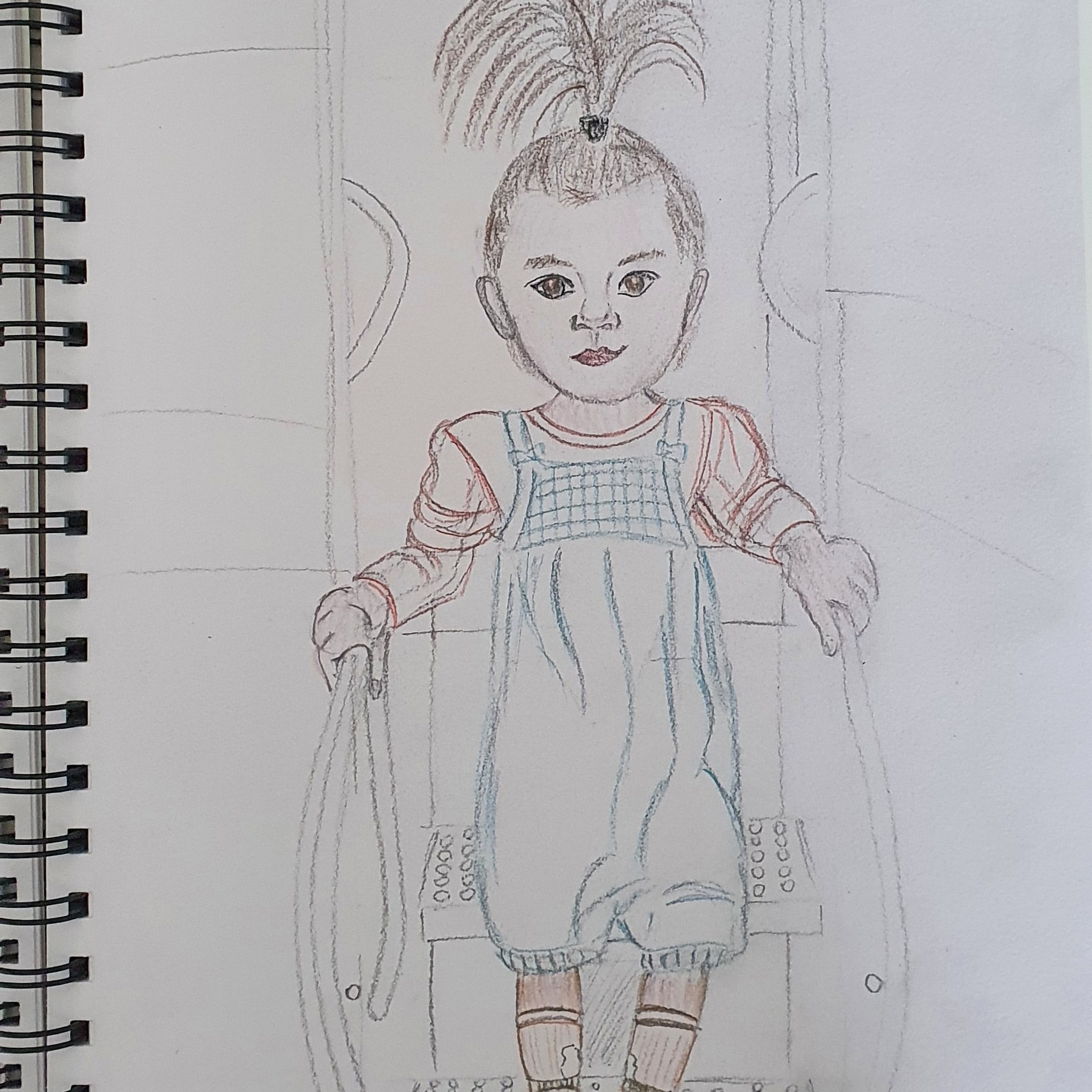 In the interest of keeping my mindfulness high and my hesitations low, I proceeded with little regard for potential criticism. Furthermore, I chose my toddler as the subject. People often don’t introduce new elements this early when adopting a new skill but I had nothing to lose and I wanted to create joyfully so I chose to draw Jasmine. My one-year old daughter brings me great joy so I focused on the positive emotions of my relationship with her and tried to refrain from being self critical. Jasmine inspired this work which I’ve titled Baby Steps. Her vibrant personality deserves colour. She’s also a curious risk taker so she was the perfect subject for this creative adventure.