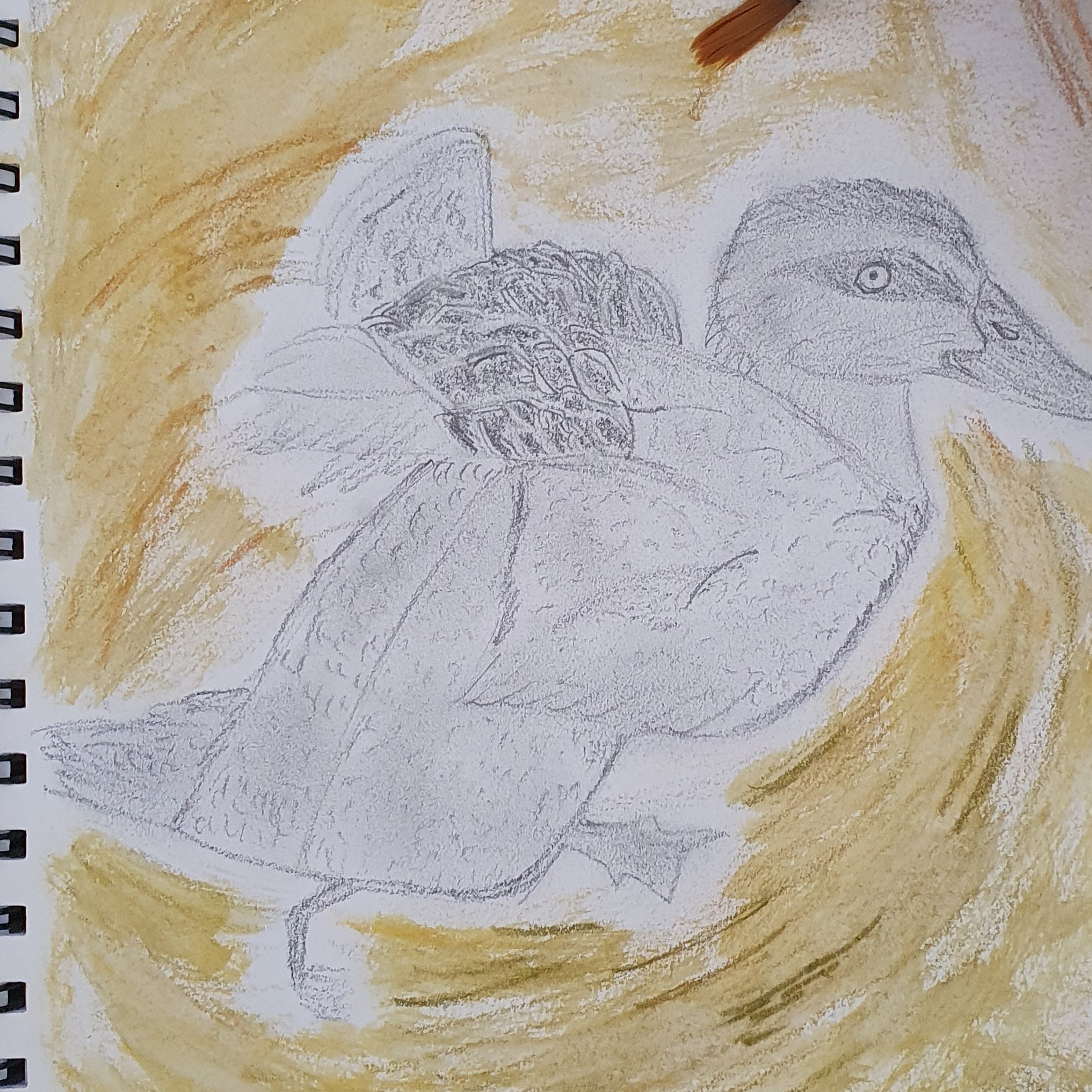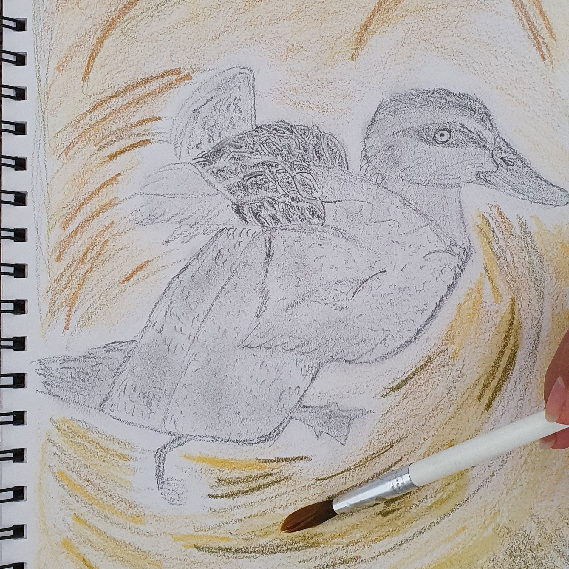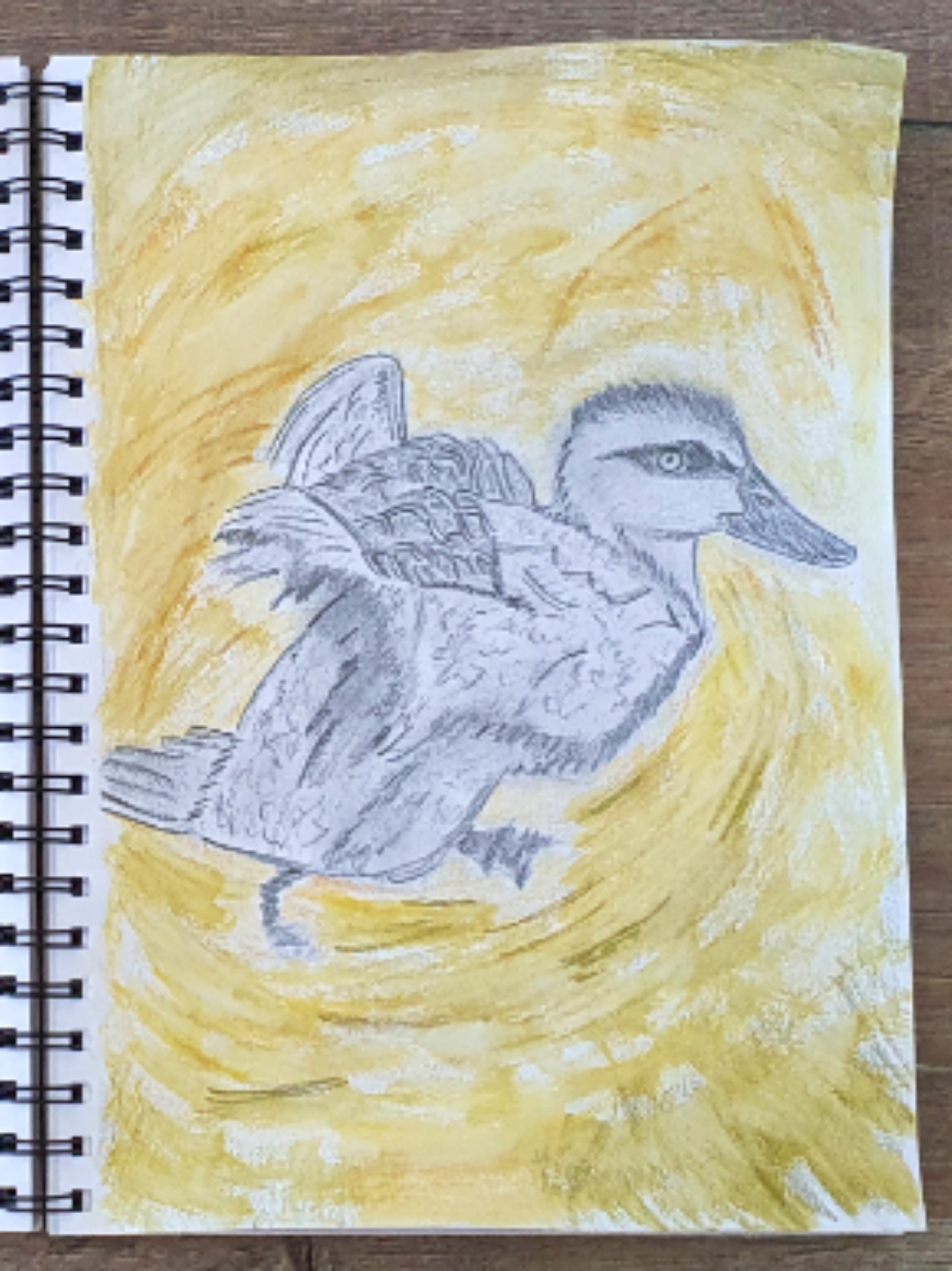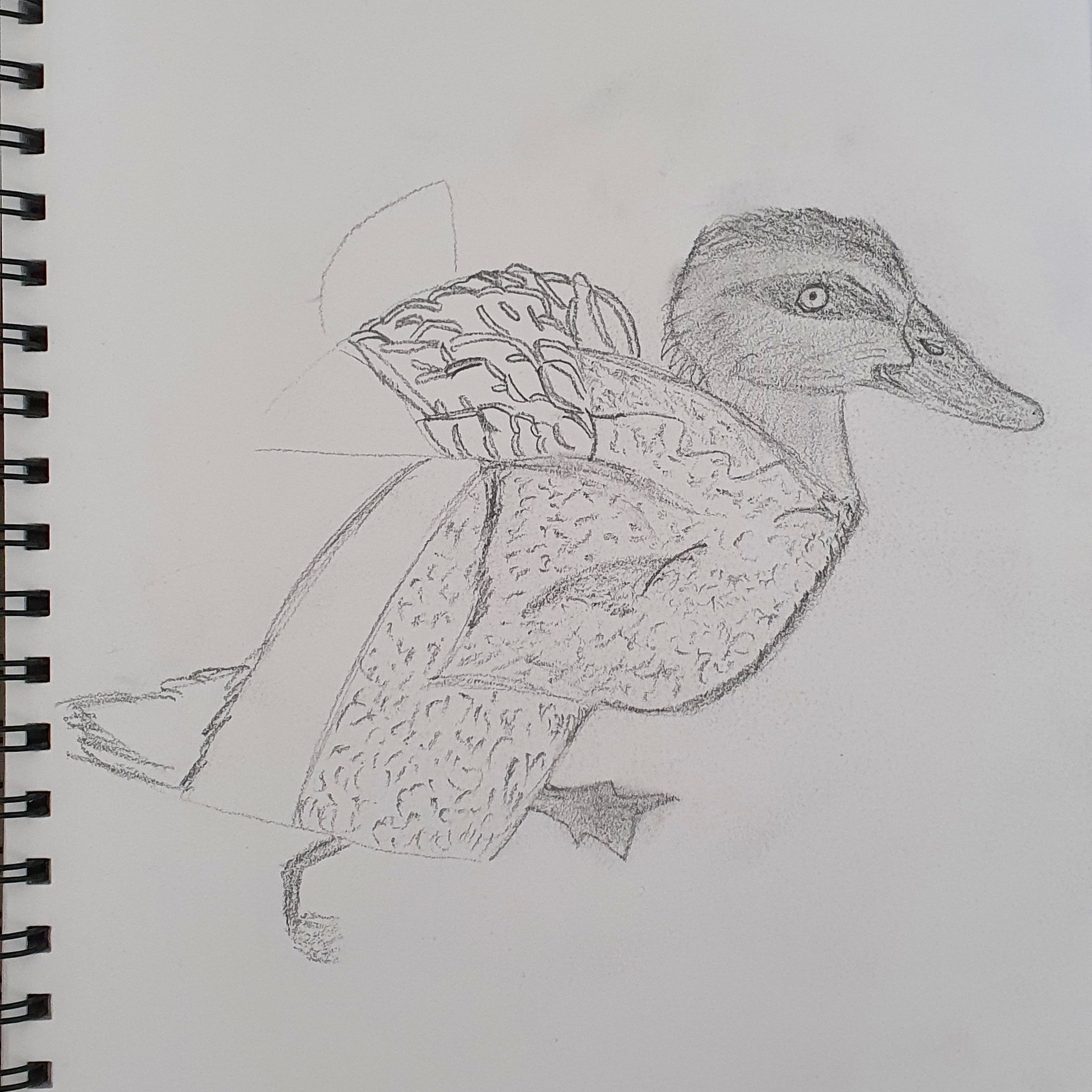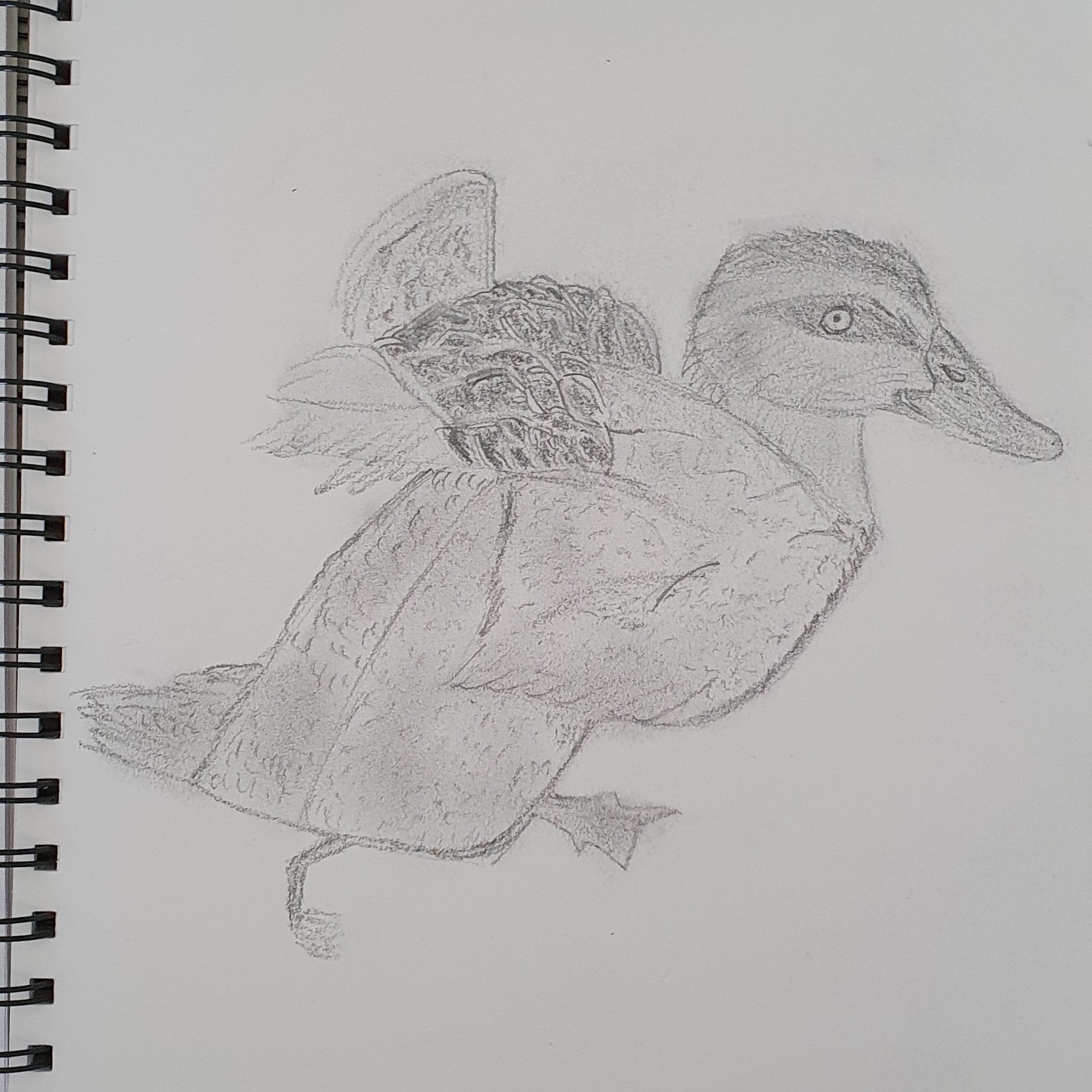 I’ve decided to draw a duck taking flight. Ducks are versatile in that they are creatures of earth, water, and sky. It seemed metaphorical for this creative phase because taking flight requires courage in order to traverse the elements in this life. This duck symbolised the boundless versatility I wish to attain in my creative practice.