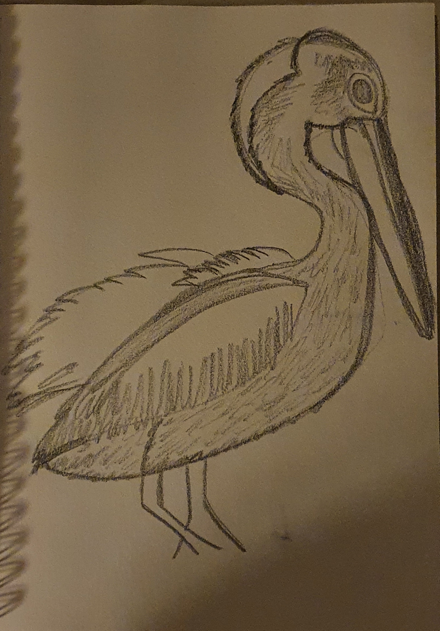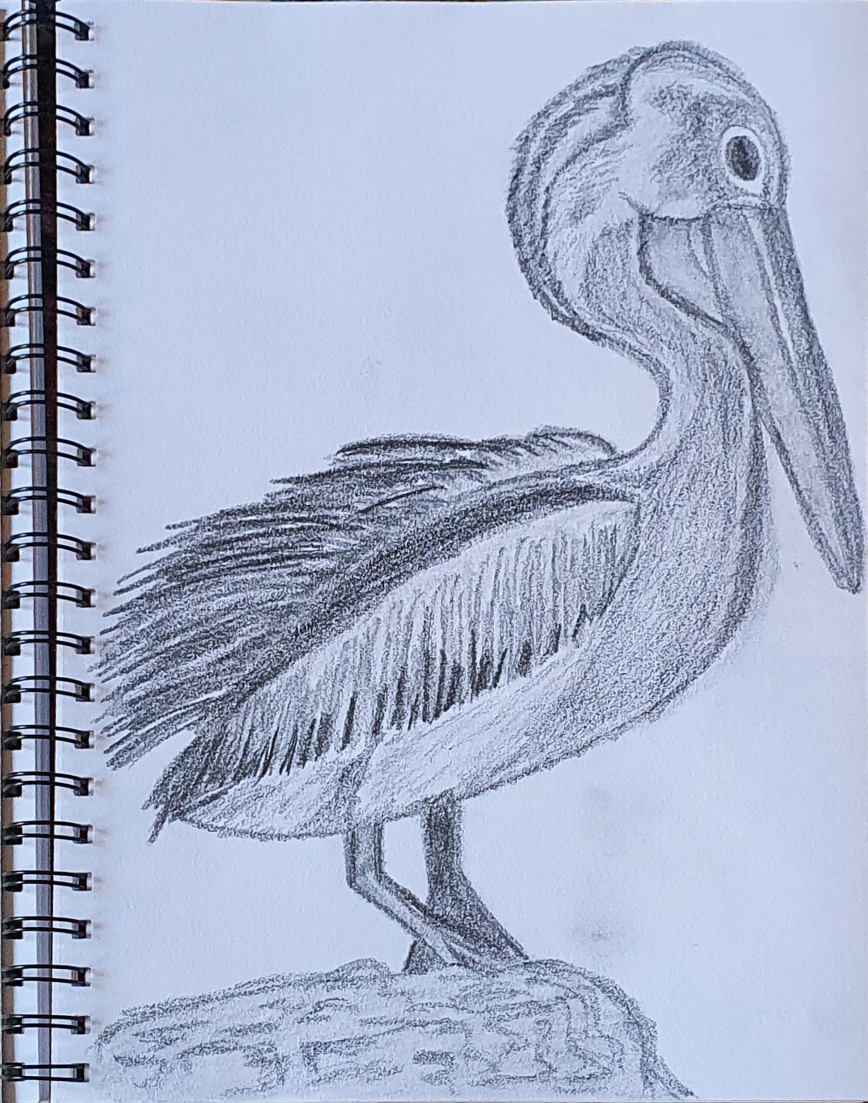 I’ve been sketching for a month now and I can already see an improvement as a result of my creative effort. I chose my latest subject while I was out on a walk with my family. I spotted this pelican poised on a rock in the Roy Amer Reserve Wetlands and something about it appealed to me. It exuded calmness and patience, and it reminded me of fishing trips with my late grandmother where we’d sit quietly and stare out into the ocean patiently waiting for the fish to bite.