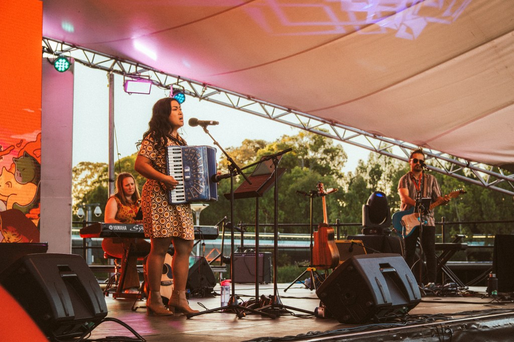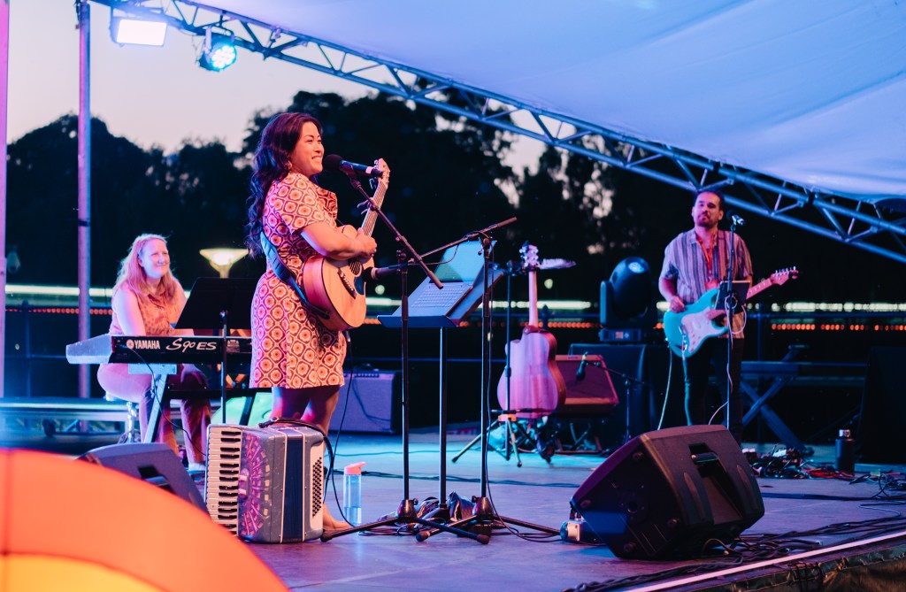 It was so nice to be back on the Lucky Dumpling Market stage. That twilight vibe and warm crowd is so special. Thank you to my wonderful musicians: Emma Knights (keyboard); Amber Fibrosi (backing vocals); and LENI (guitars) for bringing my songs to life. I especially thank them for keeping me calm when the wind blew my music stand over 5 minutes before soundcheck and smashed the screen of my tablet.